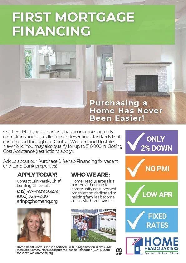 Up to $9,000 ($5,000 as a deferred loan/grant and $4,000 in a low-interest loan) in Closing Cost Assistance available to eligible homebuyers. The $9,000 is available to Home HeadQuarters’ mortgage customers only.